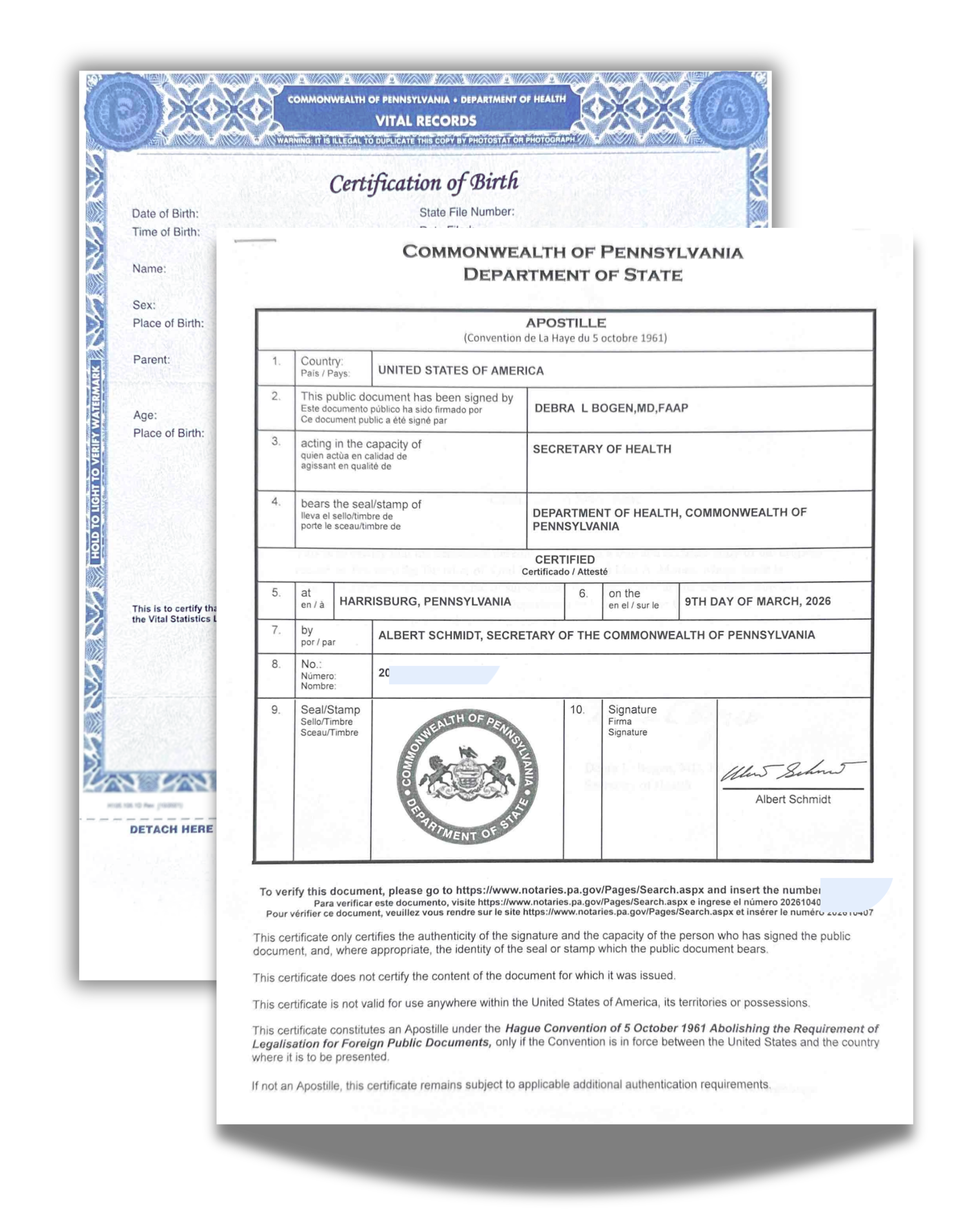 Pennsylvania Birth Certificate Apostille